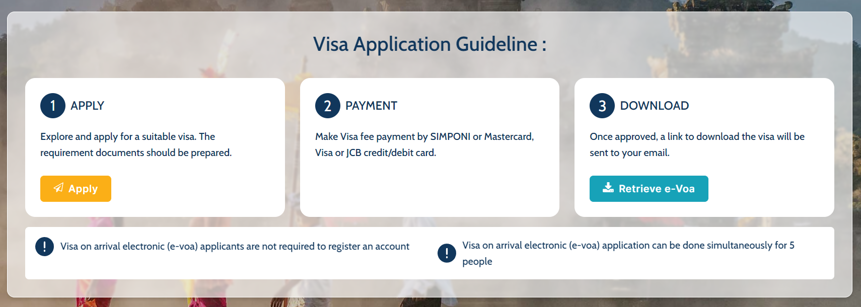 참고로 E-VOA는 Visa on arrival. 즉, 전자도착비자라는 뜻입니다.