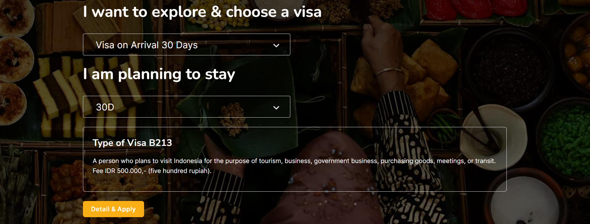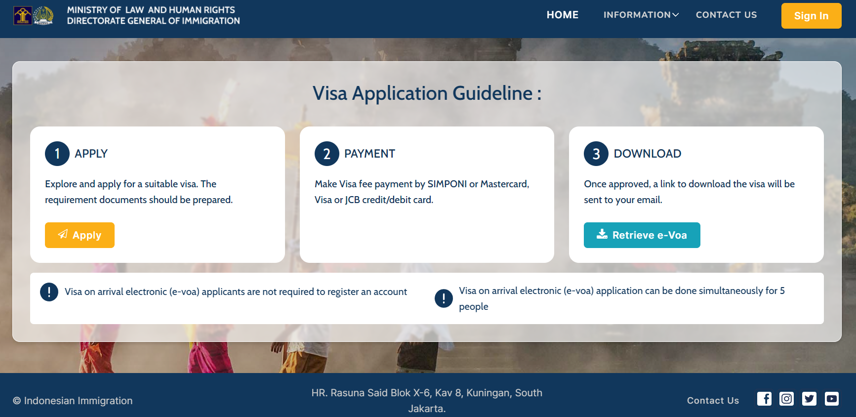 인도네시아 이민국 공식 홈페이지에서 신청합니다.