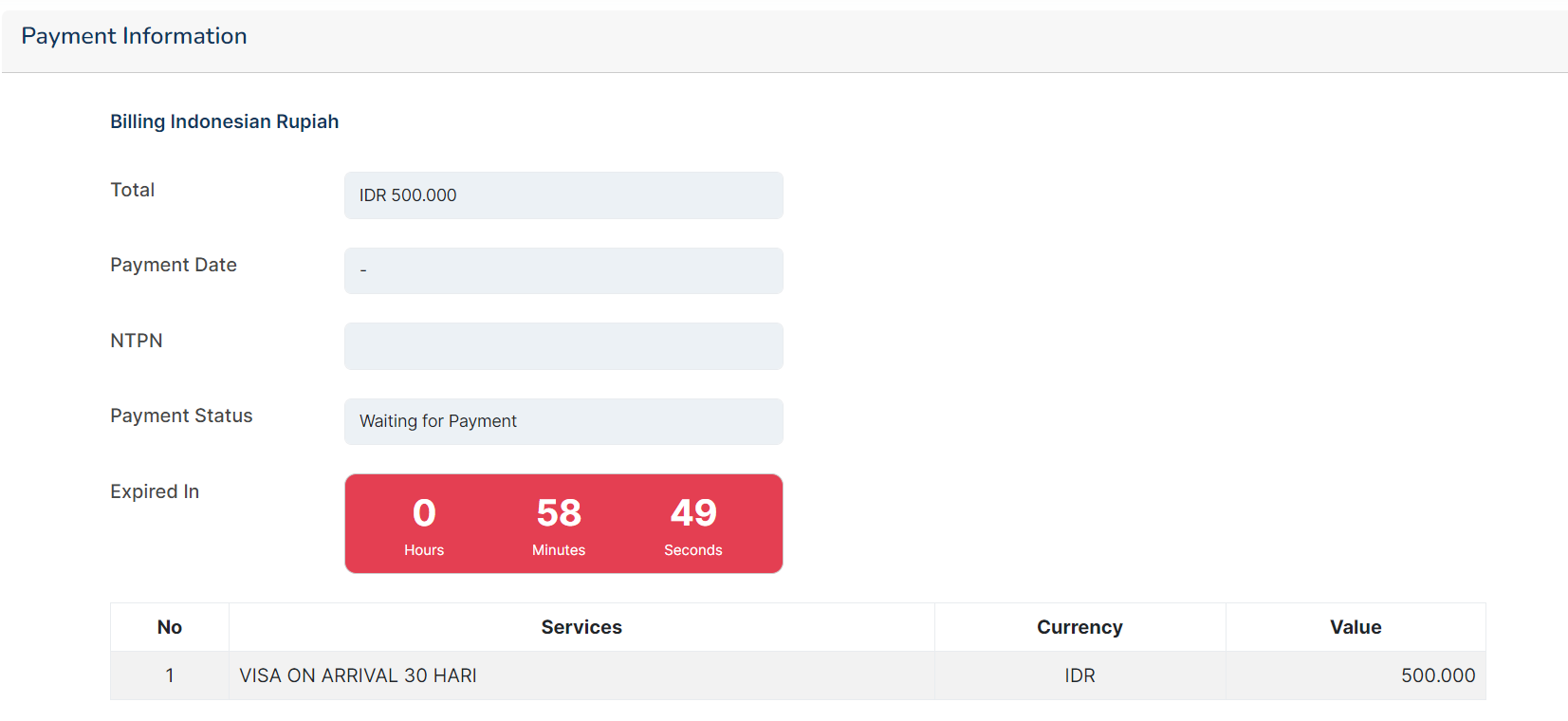 전자비자 신청하면 수수료가 조금 붙어서 IDR 519,500입니다.