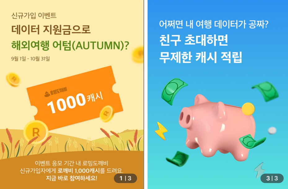 함께 여행가는 친구를 초대하면, 바로 1500 캐시를 받을 수 있고, 이심 구매 시 바로 할인적용 된답니다.