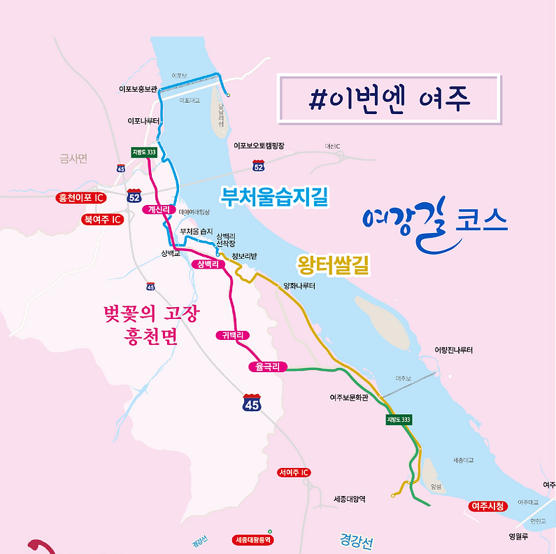 이번 행사는 흥천면에서 진행되며, 흥천면은 남한강(여강길)을 끼고 왼쪽에 위치하고 있습니다.