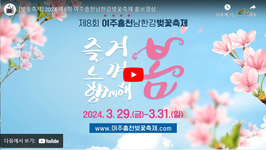 서울을 살짝 벗어나 드라이브 다녀오실 수 있는 경기권의 유일한 벚꽃축제, 여주 흥천 남한강 벚꽃축제를 추천드려요~
