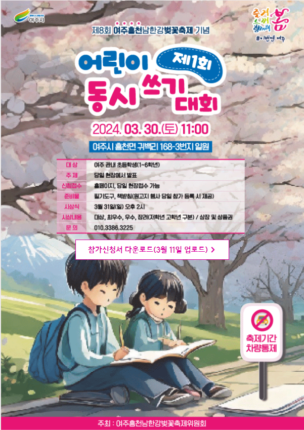 여주 관내 초등학생만 신청이 가능하며, 시상에 따라 상장 및 상품권이 증정됩니다.