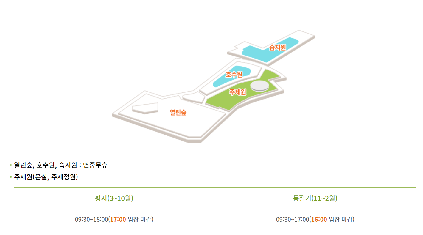 그중 주제원(온실 및 주제정원)만 입장료를 내고, 나머지는 무료개방됩니다.