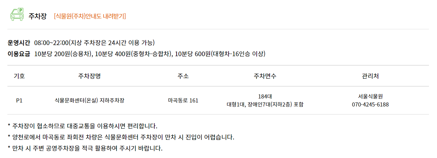 서울식물원 입장료 및 주차요금