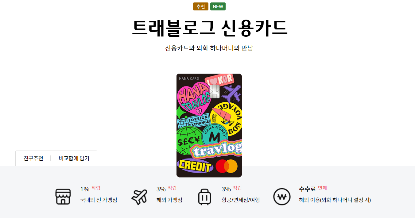 트래블로그는 하나은행 연결계좌가 있어야 하고, 발급비용도 2천 원입니다.