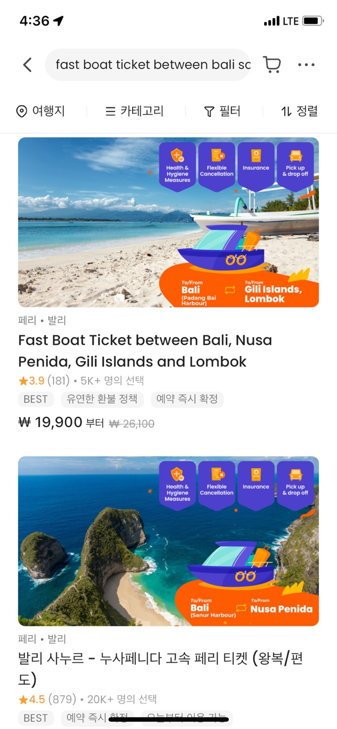 클룩 어플을 먼저 깔아주고, "fast boat ticket between Bali, Gili"를 선택합니다.