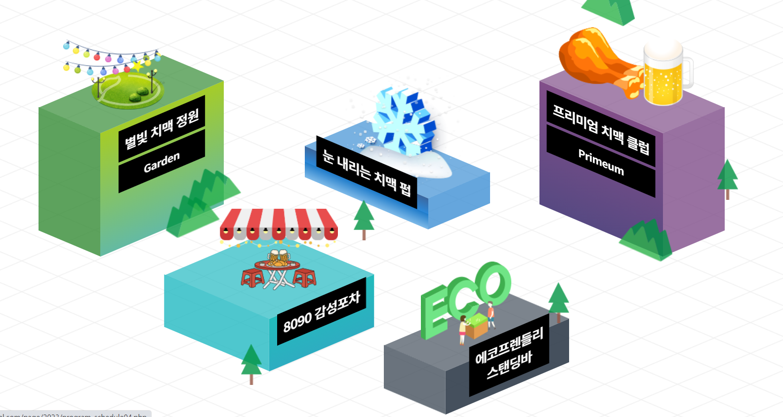 - 사전예약 식음존, 비즈니스라운지, 치맥포토존, 치맥아이스펍, 치맥아이스 아트존, 치맥게임존